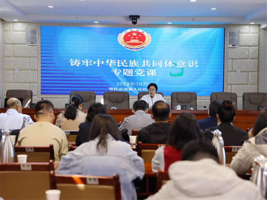 近年来,鄂托克前旗人民检察院紧扣铸牢中华民族共同体意识主线,将民族工作与检察职能深度融合,通过党建引领、理论筑基、宣传浸润、司法护航四项务实举措,有形有感有效推动铸牢中华民族共同体意识工作走深走实。该院先后获评全国文明单位、全市民族团结进步创建示范单位等荣誉,让“检察蓝”成为民族团结的生动底色。
